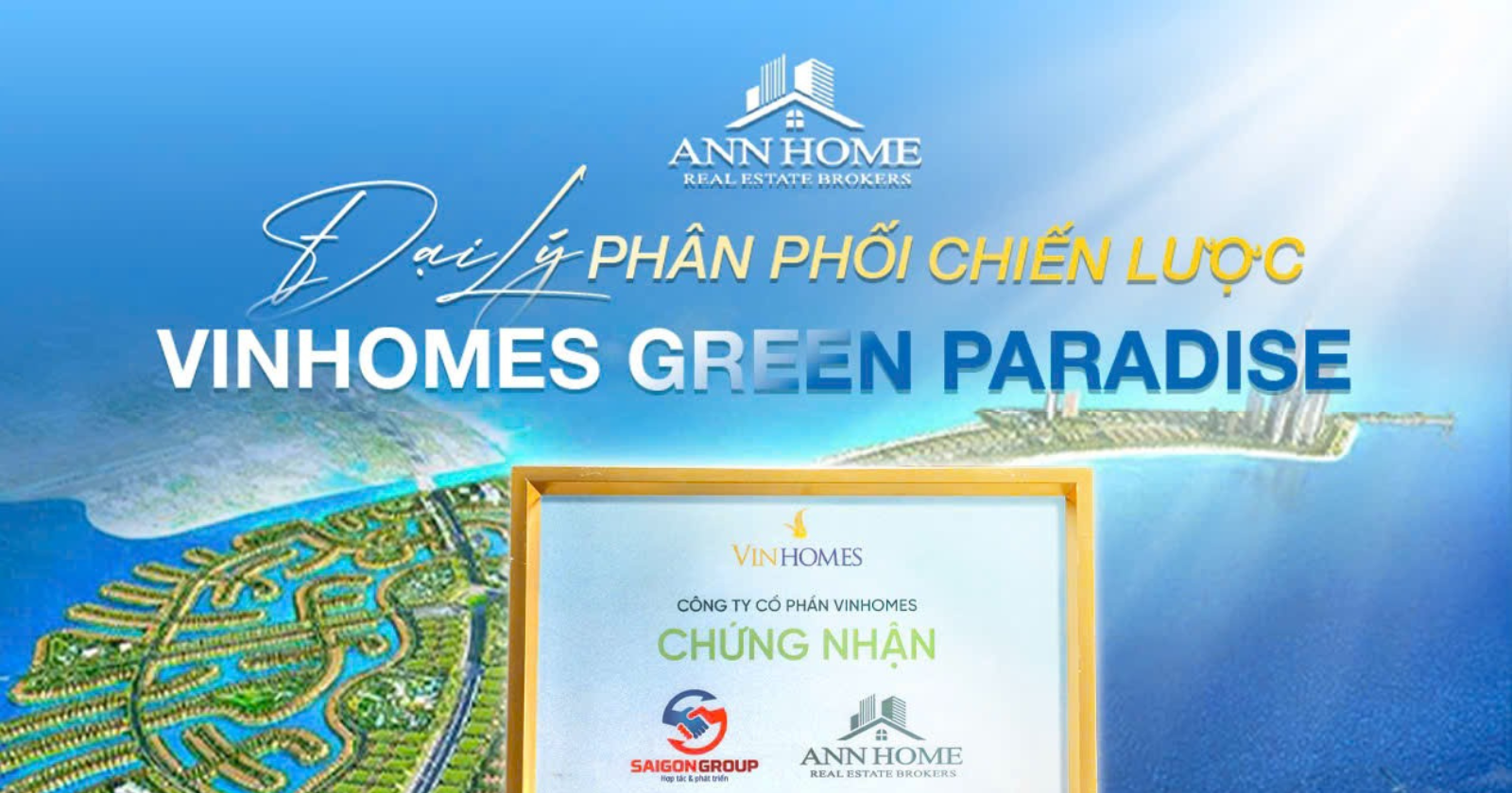 Ngày 22/09/2025, tại Hội thảo Đại lý Phân phối Chiến lược Toàn quốc diễn ra ở Vinpearl Landmark 81 (TP.HCM), Công ty Cổ phần Nhà Ann Home vinh dự được Vingroup công nhận là Đại lý phân phối chiến lược, đại lý chính thức của Vinhomes Green Paradise Cần Giờ.