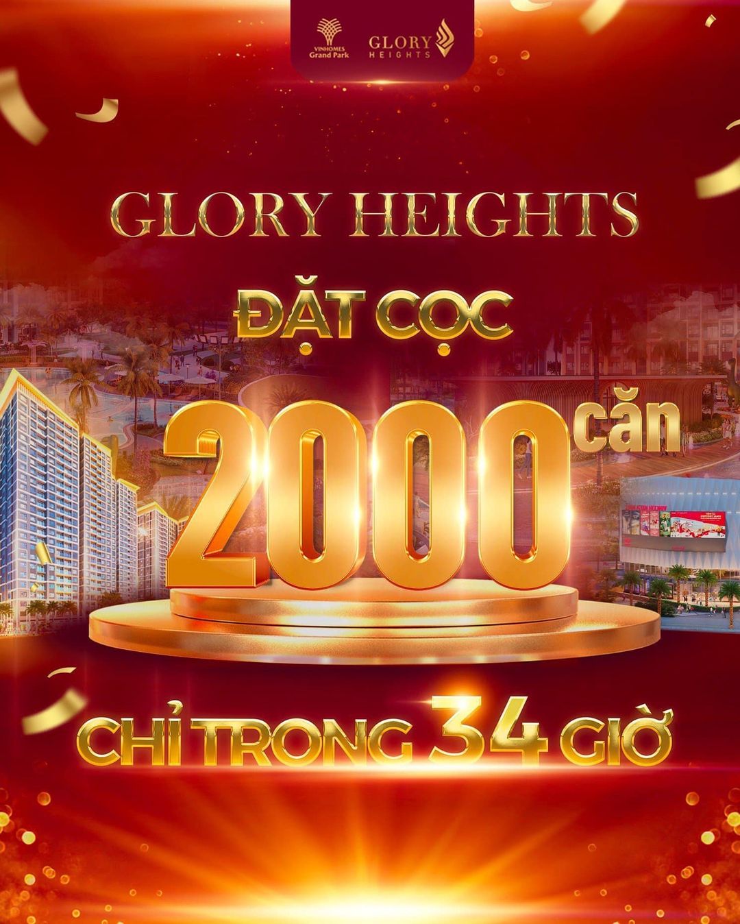 Ngay sau khi Glory Heights chính thức mở bán, nhiều khách hàng nhanh chóng quyết định “xuống tiền” sở hữu căn hộ tại dự án. Được biết trên toàn thị trường, ghi nhận tổng số căn hộ Glory Heights được đặt cọc thành công là 2.000 căn chỉ trong vòng 34 giờ. Phân khu tâm điểm tại Vinhomes Grand Park trở thành điểm sáng thị trường bất động sản TP.HCM trong giai đoạn từ đầu năm 2023 đến hiện tại.