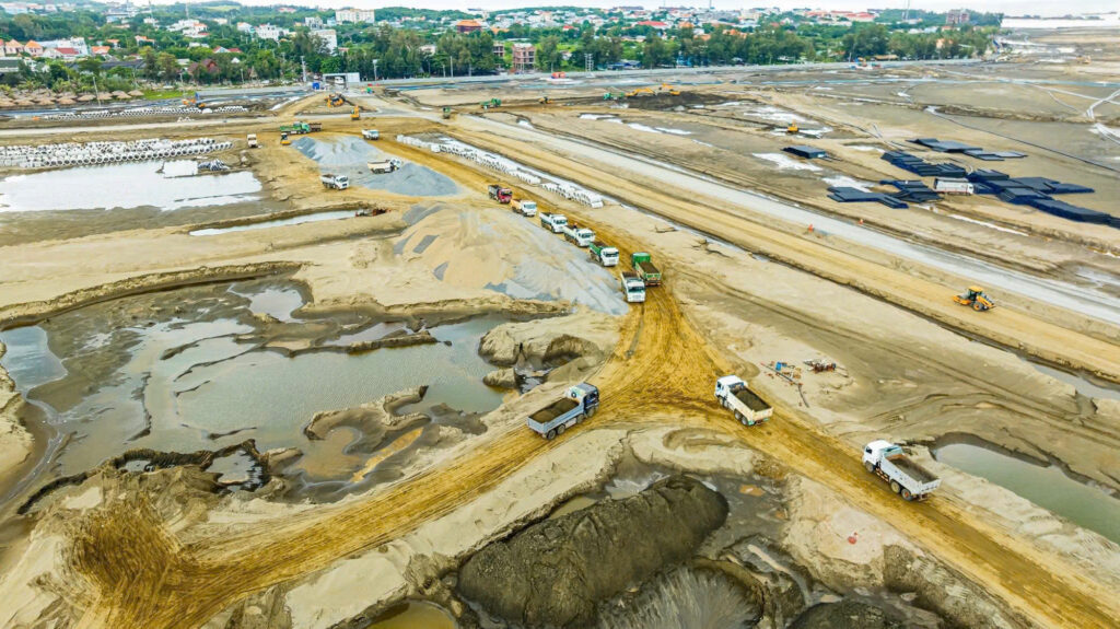 - 2024 – 2025: Bơm cát, san nền, xây dựng đường ven biển, lắp đặt hệ thống kỹ thuật.