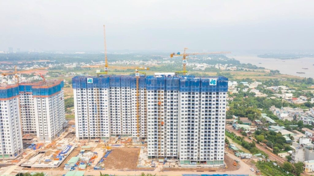 - Các toà căn hộ đang dần hoàn thiện và nhiều toà đã lên đến tầng 15-20